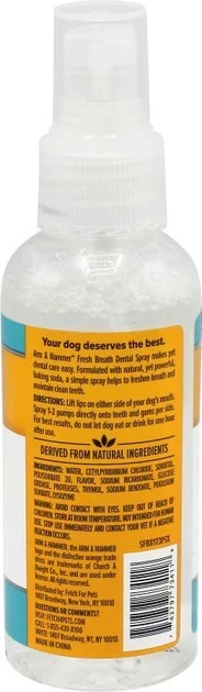 Who said your dog’s dental routine has to be difficult? With Arm & Hammer’s Dental Fresh Breath Dog Dental Spray, supporting white teeth and fresh breath is easier than ever! Just spray one to two pumps on each side of your dog’s mouth, directly on his teeth and gums, and let the gentle but powerful baking soda work its magic. Not only will the naturally derived ingredients in this spray help brighten teeth and freshen breath with a refreshing mint flavor, but they will also help your pup maintain clean teeth and healthy gums!
