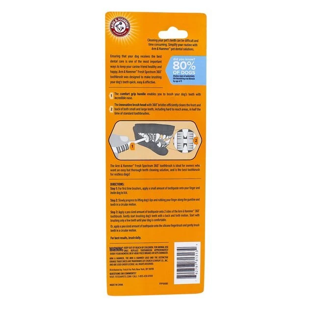 Revolutionize your dog’s teeth brushing routine with the Fresh Spectrum Large 360 Degree Toothbrush from Arm & Hammer! Help ensure your furry friend gets the dental care they deserve with this convenient toothbrush, which is specially designed for adult dogs. Sporting 360-degree bristles, this brush can efficiently clean the front and back of your canine companion’s teeth, including tough-to-reach areas. Plus, it features a comfort grip handle, allowing pet parents to clean with ease.