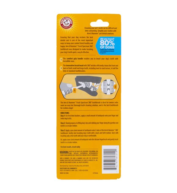 Revolutionize your dog’s teeth brushing routine with the Fresh Spectrum Small 360 Degree Toothbrush from Arm & Hammer! Help ensure your furry friend gets the dental care they deserve with this convenient toothbrush, which is specially designed for puppies and small dogs. Sporting 360-degree bristles, this brush can efficiently clean the front and back of your canine companion’s teeth, including tough-to-reach areas. Plus, it features a comfort grip handle, allowing pet parents to clean with ease.