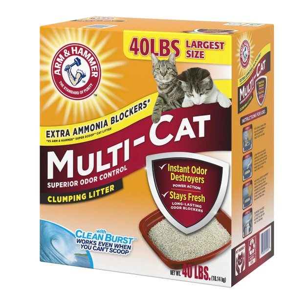 No matter how many cats you have, an odor-free home starts with Arm & Hammer Litter. This Multi-Cat Strength Clean Burst Clumping Litter is now formulated with even more freshness! It features clay odor neutralizers and Arm & Hammer baking soda for superior odor control. It is also 99% dust-free to reduce tracking and so you and your feline friend can breathe easy. Best of all, not only will your house stay smelling so fresh and so clean, even when you can’t scoop, but the rock-solid clumping formula makes scooping extra easy. Upgrade your kitty’s litter and kick foul odors to the curb with this Arm & Hammer cat litter.