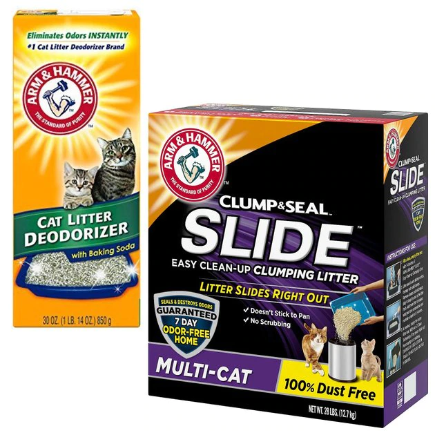 - Each purchase comes with Arm & Hammer Litter Cat Litter Deodorizer Powder, 30-oz box & Arm & Hammer Litter Slide Multi-Cat Scented Clumping Clay Cat Litter, 28-lb box.