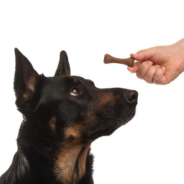 - Bone-shaped treats have “nubbies” that help to scrub away plaque and tartar as your pup chews.