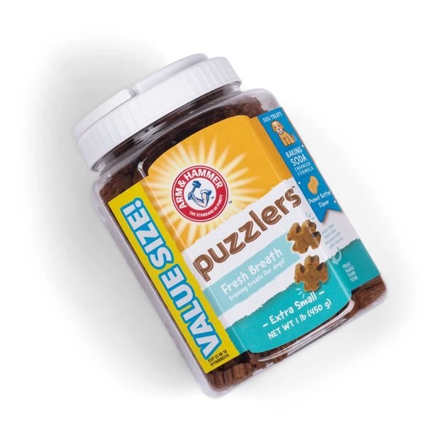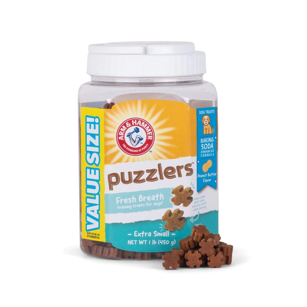 - These fun puzzle-shaped chews take care of bad breath fast thanks to added baking soda.