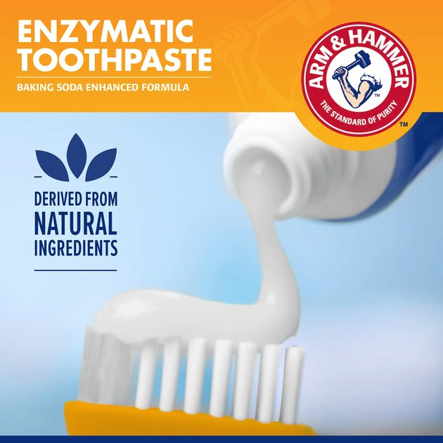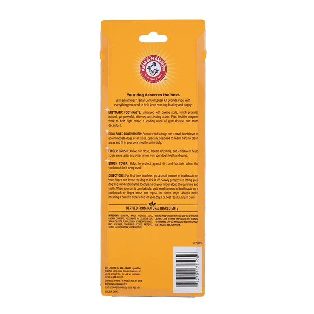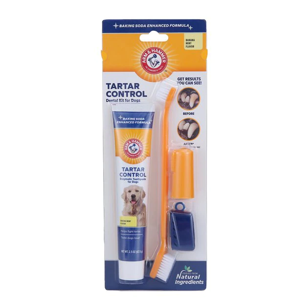 With the Arm & Hammer Tartar Control Banana Mint Dog Dental Kit, your furbaby’s pearly whites will be looking paw-some! Baking soda provides a natural, powerful cleaning action, helping to deodorize your pup’s teeth and gums. Powerful enzymes work to fight tartar, helping to prevent gum disease and tooth decay. The baking soda dissolves deep within the microscopic crevices of each tooth’s surface, providing maximum-strength cleaning. This toothpaste helps to whiten your dog’s teeth and freshen his breath, so you’ll love those doggie kisses even more. Plus, your dog will love the tasty banana mint flavor. With the included toothbrush, you can get to all of those hard-to-reach places for a thorough cleaning.