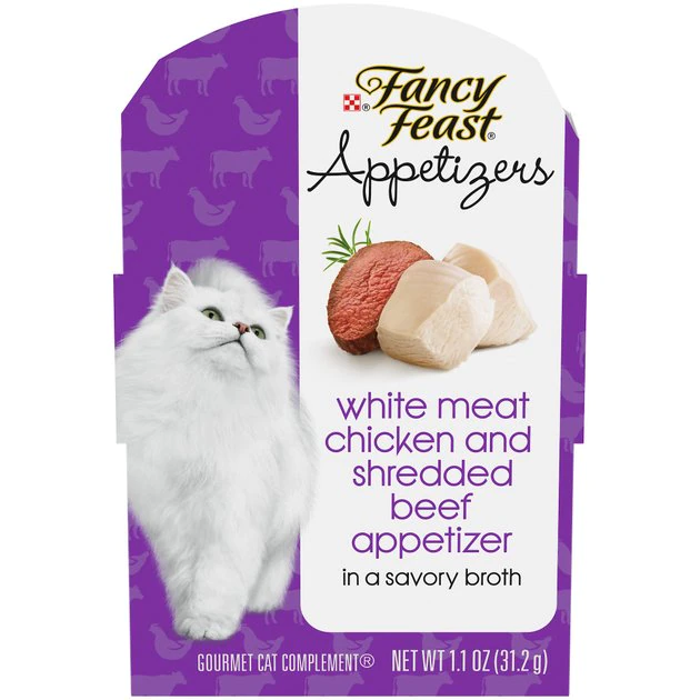 Feed up to one tray per day for an average size adult cat. Fancy Feast Appetizers are intended for supplemental feeding only. This product may be fed daily along with a complete and balanced cat food diet.