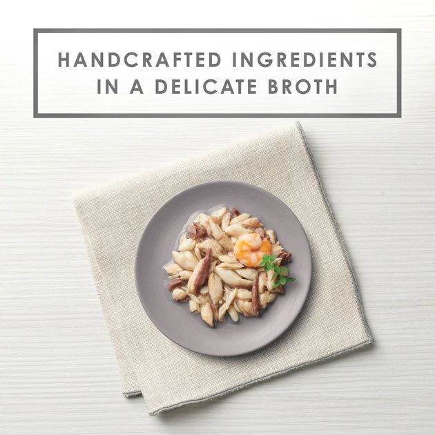Pamper your pal with the decadent taste of Purina Fancy Feast Appetizers. Crafted with real, flaked oceanfish and shrimp in a savory fish broth, this recipe will have your cat purring with approval. The unbeatable combination of these recognizable ingredients provides your feline friend with a grain-free treat and a reason to lick her dish clean every time. Fancy Feast Appetizers are the purr-fect complement to your cat’s complete and balanced diet. So, tempt your fancy feline’s taste buds and watch her delight in the sophisticated taste and enticing texture of this gourmet recipe.