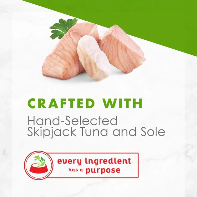 - Grain-free and gourmet recipe made with real ingredients you can recognize including skipjack tuna and sole.