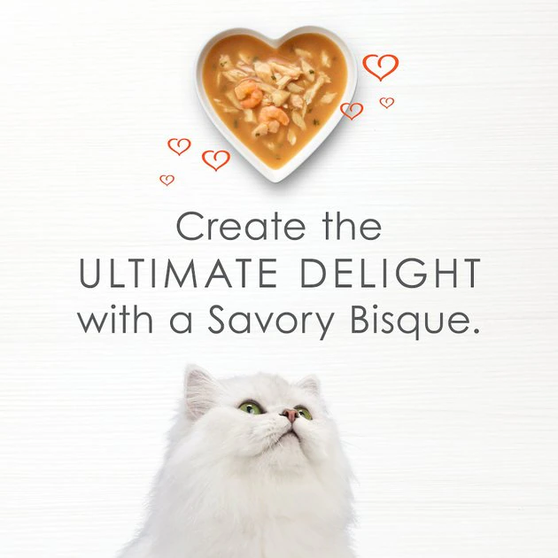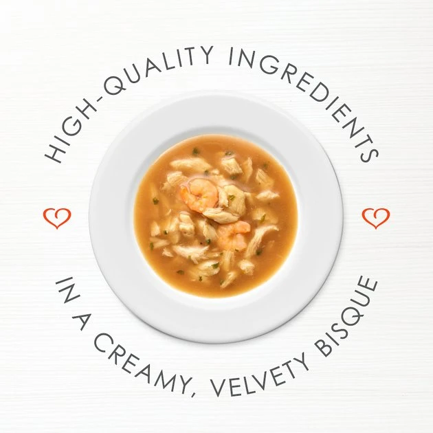 Add flavor and nutrients to your mate’s next meal with Purina Fancy Feast Broths! This seafood bisque features pieces of real shrimp and more great ingredients. The grain-free mixer contains no artificial colors, flavors, or preservatives. It’s also super delicious, making it a purr-worthy way to slip your cat some extra nutrients. Transform your feline’s normal food into hearty, tasty entrées by mixing in this gourmet seafood bisque from Fancy Feast!