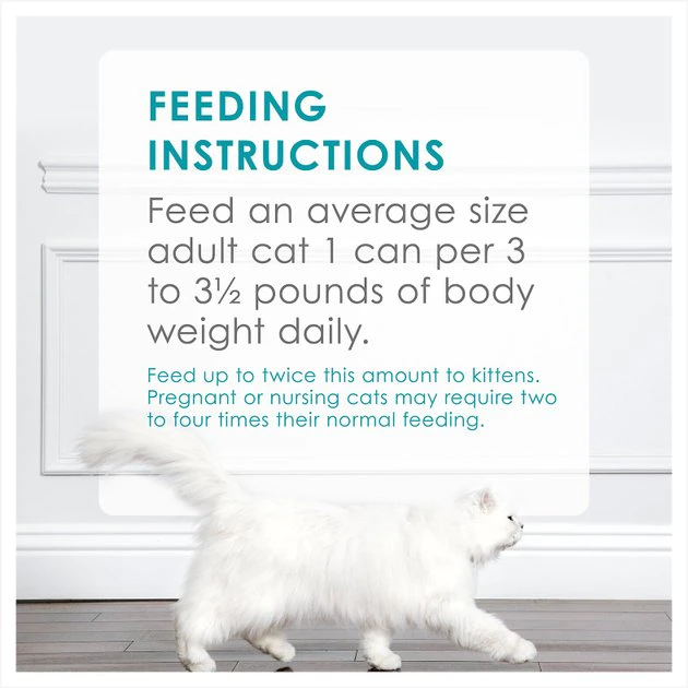 Feed an average size adult cat 1 can per 3 to 3 1/2 lbs of body weight daily.