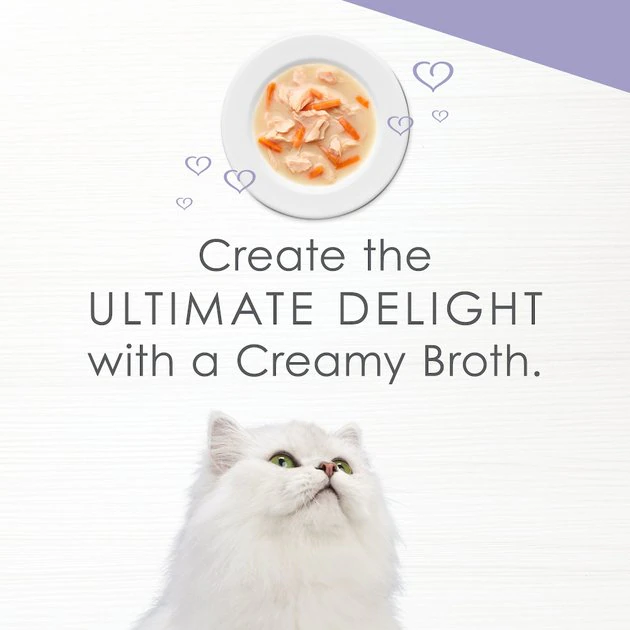 Make mealtime a succulent feast of flavor with Fancy Feast Creamy Broths with Wild Salmon & Whitefish Supplemental Cat Food Pouches. This gourmet cat food complement features tender morsels of real salmon and whitefish in a decadent, creamy broth. It’s crafted from real, recognizable ingredients without the use of by-products or fillers. Each perfectly portioned, ready-to-pour pouch includes a variety of lickable, lappable tastes and textures your favorite feline will paw-sitively love.