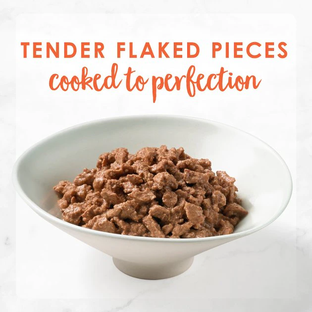- Tasty wet food recipe features real flaked meat for the high-protein nutrition your little carnivore craves.