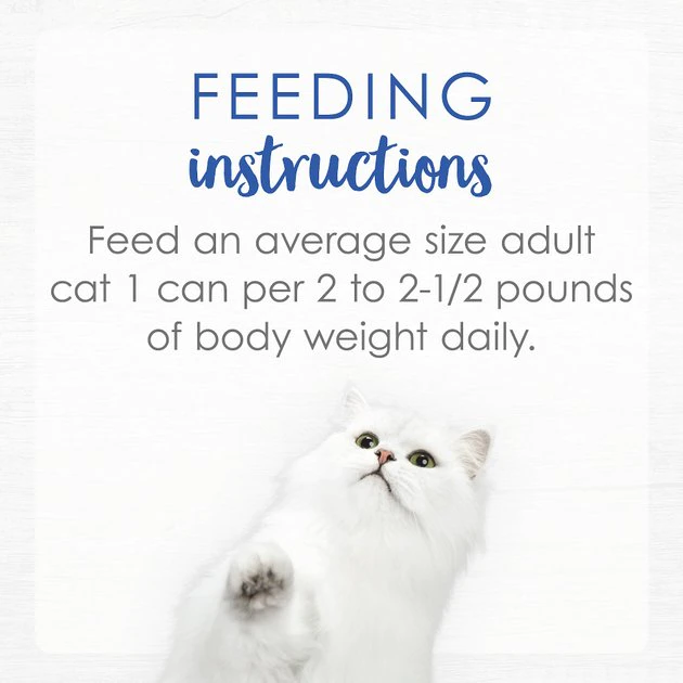 Feed 1 can per 2 to 2 1/2 pounds of body weight daily. Adjust as needed. Divide into two or more meals.