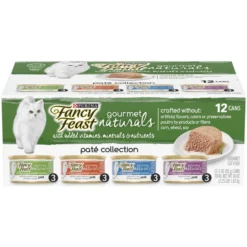 Tempt your favorite feline with Fancy Feast’s Gourmet Naturals Variety Pack! With 12 cans and four purr-worthy recipes, including White Meat Chicken, Beef, Wild Alaskan Salmon, and Trout & Tuna, how can you go wrong? Each grain-free pate is made with real meat or fish and is completely free of artificial flavors, colors and preservatives, poultry by-products, fillers, corn, wheat and soy. All four protein-rich formulas feature high-quality natural ingredients and are 100% nutritionally complete and balanced with added vitamins, minerals and nutrients for your adult feline friend.