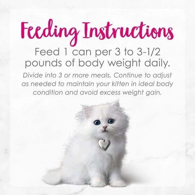 Feed 1 can per 3 – 3 1/2 lbs of body weight daily. Adjust as needed to maintain your kitten in ideal body condition.