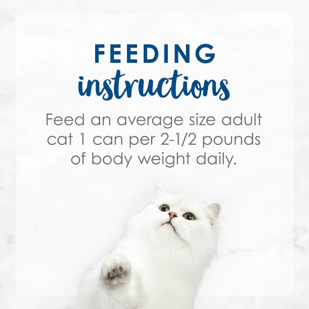 Feed an average size adult cat 1 can per 2.5 lbs of body weight daily. Refrigerate unused portion.
