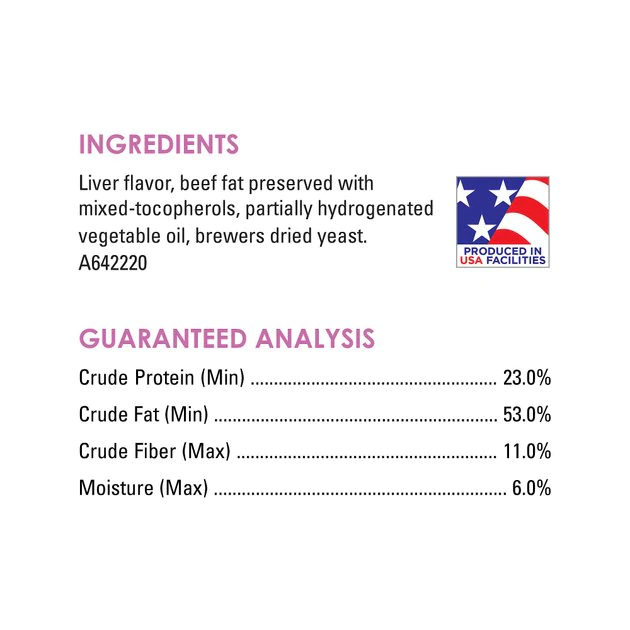 Liver Flavor, Beef Fat Preserved With Mixed-Tocopherols, Partially Hydrogenated Vegetable Oil, Brewers Dried Yeast.