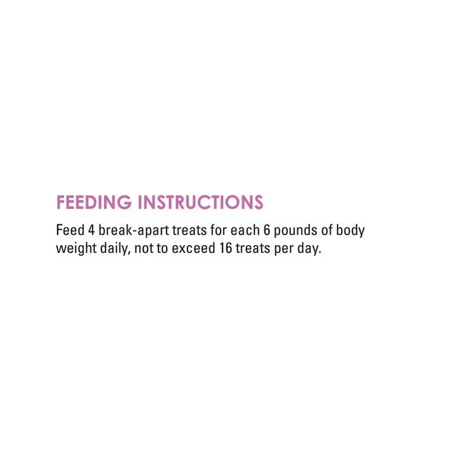 Feed as a treat to your adult cat. This product is a treat and is not intended to be fed as a meal. Feed 4 break-apart treats for each 6 pounds of body weight daily, not to exceed 16 treats per day. The caloric intake from treats should not exceed 10% of a cat’s total daily caloric requirement. If treats are given, the amount of food should be reduced accordingly. Provide adequate fresh water in a clean container daily. For your pet’s health, see your veterinarian regularly.
