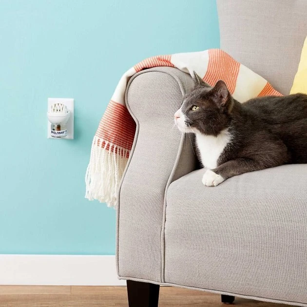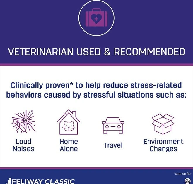 - May help with stress caused by a new pet, moving to a new home, visitors, or even rearranging the furniture—plus, it can help reduce unwanted behavior such as scratching, urine spraying and hiding.