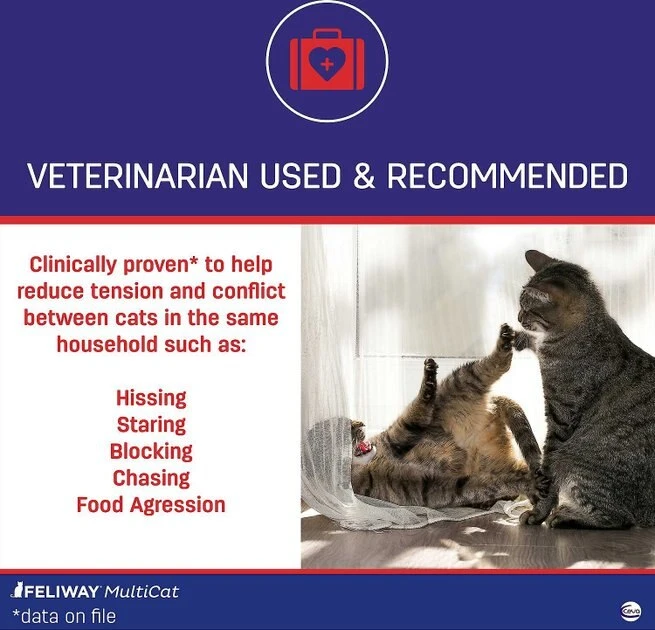 - The bonding pheromone can be used to help reduce tension and conflict in multi-cat households such as hissing, staring, blocking, chasing and food aggression.