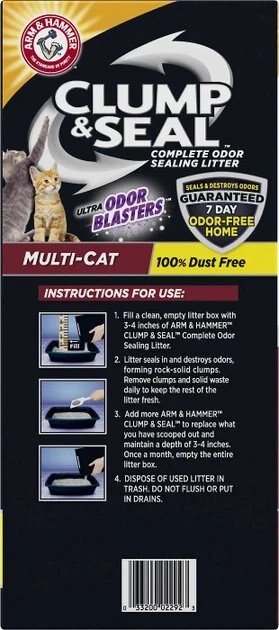 - Proprietary blend of moisture-activated micro-granules form a tight seal around odors while baking soda destroys sealed-in odors on contact for 7 days of odor protection in multi-cat households.