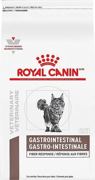 - Royal Canin Veterinary Diet Gastrointestinal Fiber Response Dry Cat Food is a veterinary-exclusive dry cat food for cats with long- or short-term digestive sensitivities.