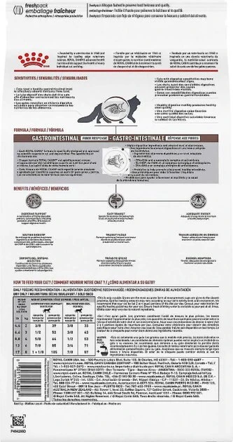 - Royal Canin Veterinary Diet Gastrointestinal Fiber Response Dry Cat Food promotes digestive health and optimal stool quality with highly digestible proteins and prebiotics.